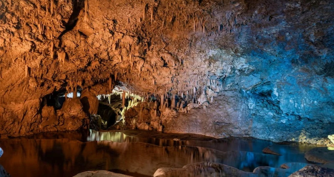 Harrisonova krápníková jeskyně (Harrison’s Cave) je podzemní systém o délce 2,3 kilometru. Hlavní částí je tzv. Velký sál, kde se nachází strop ve výšce úctyhodných 15 metrů. Můžete obdivovat rovněž krápníky a vodopády. Místo je skutečným rájem speleologů a častým cílem návštěvníků ostrova.