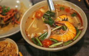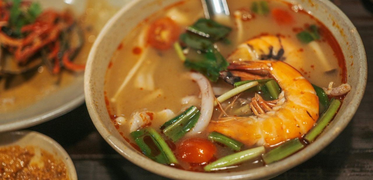 Thajská kuchyně patří k pikantním způsobům přípravy jídel. Používá mnoho různých koření. Populární je galangal, koriandr, citrónová tráva, šalotka, pepř a především chilli. Základem většiny jídel je rýže, nechybí tradiční nudle. Jako sladidlo se používá palmový cukr.