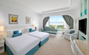 Tower pokoj s částečným výhledem na moře (40m2) - klimatizace, minibar, varná konvice, sejf, fén, telefon, žehlička a žehlící prkno, SAT/TV, Wi-fi internet, koupelna, sprcha, WC, sedací souprava. Možnost přistýlky.