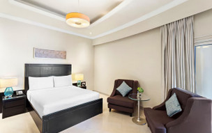 145 suite s kuchyňkou (za příplatek možnost kompletního vybavení), vše s výhledem na moře. Klimatizace, 3 restaurace, 2 bary, bazén, masáže, fitness, tenis, plážový volejbal, golf, rybaření, boutique, dětský klub, business centrum, konferenční sál, Wi-fi internet, pronájem aut, zdarma shuttle bus do nákupního centra Dubai Mall.