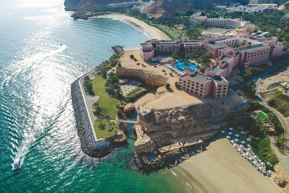 Al Husn Hotel Muscat (ex Shangri-la Al Husn Resort & Spa) – „Zámek“, 180 pokojů a suite, 6* - omanská elegance a asijská pohostinnost se snoubí v luxusním hotelu s panoramatickým výhledem na sousední Shangri-la Barr Al Jissah Resort & Spa, s vlastní 100 m dlouhou privátní pláží. Design resortu spojuje maurské a omanské architektonické prvky s bohatým dědictvím Sultanátu Omán a je tak odrazem silných kulturních odkazů v celé dekoraci. Jen pro dospělé nad 16 let.