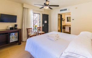 Superior pokoj - klimatizace, ventilátor, sejf, minibar, varná konvice, fén, telefon, SAT/TV, koupelna, sprcha, WC, balkon nebo terasa, žehlička s žehlicím prknem. Možnost ubytování 3 dospělých nebo 2 dospělých a 2 dětí v pokoji.