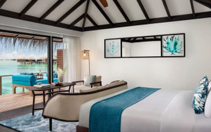 Over Water villa (62 m2) - klimatizace, minibar, sejf, varná konvice, fén, telefon, SAT/TV, CD/DVD přehrávač, multimediální přípojka, Wi-fi internet zdarma, koupelna, sprcha, WC, terasa, sedací souprava, plážová lehátka se slunečníky. Možnost přistýlky.