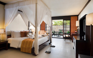 Elegantní a rozlehlý resort ve stylu balijského vodního paláce v nádherné tropické zahradě zkrášlené kamennými sochami, fontánami a lagunovitými bazény!