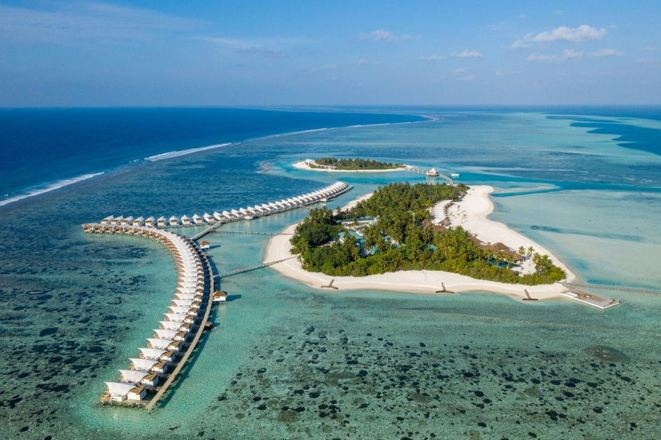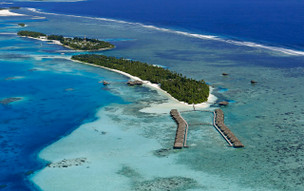 Meemu Atoll, vzdálenost od letiště 148 km – transfer hydroplánem 45 minut, vnitrostátní let a rychloloď .