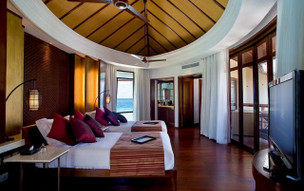 Vodní vila s bazénem (100 m2) - klimatizace, ventilátor, minibar, sejf, varná konvice, fén, telefon, 42´´ LCD SAT/TV, CD/DVD přehrávač, Wi-fi internet zdarma, koupelna, sprcha, WC, terasa s vlastním sladkovodním bazénem, sedací souprava, plážová lehátka se slunečníky. Možnost přistýlky.