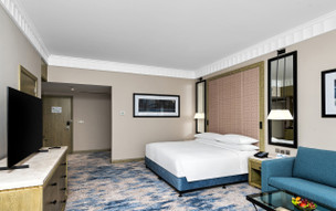 Guest pokoj (42m2) - klimatizace, minibar, sejf, varná konvice, fén, telefon, SAT/TV, Wi-fi internet, koupelna, sprcha, WC, balkon nebo terasa, sedací souprava. Možnost přistýlky.