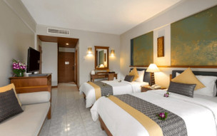 Deluxe pokoj (30m2, v hotelové budově) - klimatizace, minibar, sejf, telefon, Wi-fi internet zdarma, SAT/TV, koupelna, sprcha, WC, balkon nebo terasa. Možnost přistýlky.
