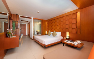 Deluxe pool view pokoj (42-51m2) - klimatizace, minibar, sejf, varná konvice, fén, telefon, SAT/TV, CD/DVD/Mp3 přehrávač, Wi-fi internet zdarma, koupelna, sprcha, WC, balkon. Možnost přistýlky.