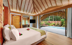 Garden Pool Villa - klimatizace, ventilátor, minibar, sejf, varná konvice, fén, telefon, SAT/TV, Wi-fi internet, CD přehrávač, venkovní i vnitřní sprcha, WC, terasa s vlastním bazénem a odpočívárnou. Možnost přistýlky a možnost ubytování až 2 dětí.