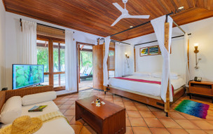 Beach vila (70 m2) - klimatizace, ventilátor, minibar, sejf, varná konvice, fén, telefon, SAT/TV, Wi-fi internet zdarma, multimediální přípojka, open air koupelna, sprcha, WC. Možnost přistýlky.