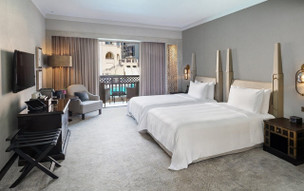 161 pokojů a 81 suite. Klimatizace, 4 restaurace, bary, bazén s arabskými stany na odpočinek, SPA centrum, fitness, tenis, squash, boutique, business centrum, konferenční sál, Wi-fi internet zdarma, pronájem aut.