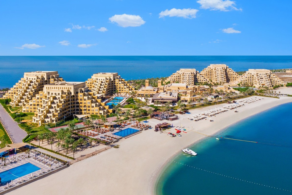 Ras Al Khaimah - Marjan Island. Jeden z nejluxusnějších komplexů v emirátu Ras Al Khaimah leží přímo u nádherné písečné pláže na uměle vybudovaném ostrově Al Marjan, s pozvolným vstupem do moře. Nedaleko se nachází také mistrovské 18ti jamkové golfové hřiště Al Hamra Golf Club, leží cca 5 minut jízdy od menšího nákupního centra Al Hamra Mall a cca 5 minut jízdy od vodního parku ICE Land s nejvyšší vodní skluzavkou na světě. Vzdálenost od letiště v Dubaji cca 65 minut jízdy, od centra Ras Al Khaimah cca 25 minut jízdy.