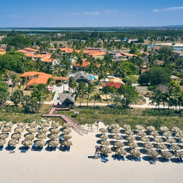 přímo na písečné pláži, v krásné zahradě s bujnou vegetací, cca 5 minut jízdy od centra letoviska Varadero, v pěší vzdálenosti od obchůdků, barů a restaurací, vzdálenost od letiště Varadero cca 30 minut jízdy. V blízkosti se nachází 18-ti jamkové golfové hřiště.