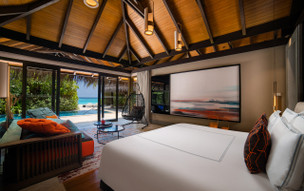 Sunrise Water Pool Vila (223 m2) - každá vila se skládá z prostorné ložnice s obývací částí, kde je prosklená podlaha, dále velká koupelna s dešťovou sprchou, umyvadly a kruhovou vanou s náladovým osvětlením a neomezeným výhledem na oceán. Ložnice i koupelna mají přístup na sluneční terasu, kde máte k dispozici privátní bazén s lehátky a posezením. Samozřejmostí je individuální klimatizace, ventilátor, minibar, sejf, varná konvice, fén, telefon, SAT/TV, Wi-fi internet zdarma. Všechny vily jsou velice prostorné, moderně zařízené, s důrazem na každičký detail. Všechny místnosti jsou plné světla a nabízí i možnost ubytování až 2 dětí.